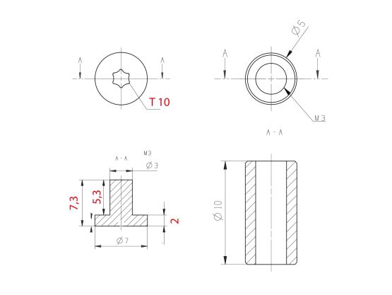 Pro precizní usazení šroubu doporučujeme použít frézu - Fréza na šrouby 7mm a čep 4mm