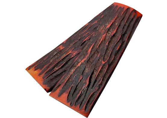 Velmi kompaktní materiál jelení kosti zaručuje vysokou odolnost střenky. Pro vyšší efekt je kost probarvená v celém průřezu a je možné ji brousit bez změny barevnosti, která je v tomto případě hnědo-oranžová a připomíná barvou pálená paroh.