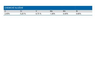 Prášková ocel od firmy Crucible Industries LLC z USA vytvářející i při tvrdosti 64 HRc mimožádně odolné ostří proti vylamování při vysokém silovém působení.