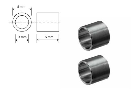 Distanční kroužek pruměr 5mm, díra 3 mm délka 5mm vhodný na zavírací nože. Vyroben je velmi přesně z korozivzdorné oceli.