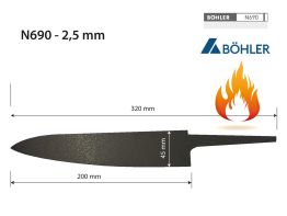 Hardened kitchen knife blade - KN1- N690 - 1,8x32x250/130mm