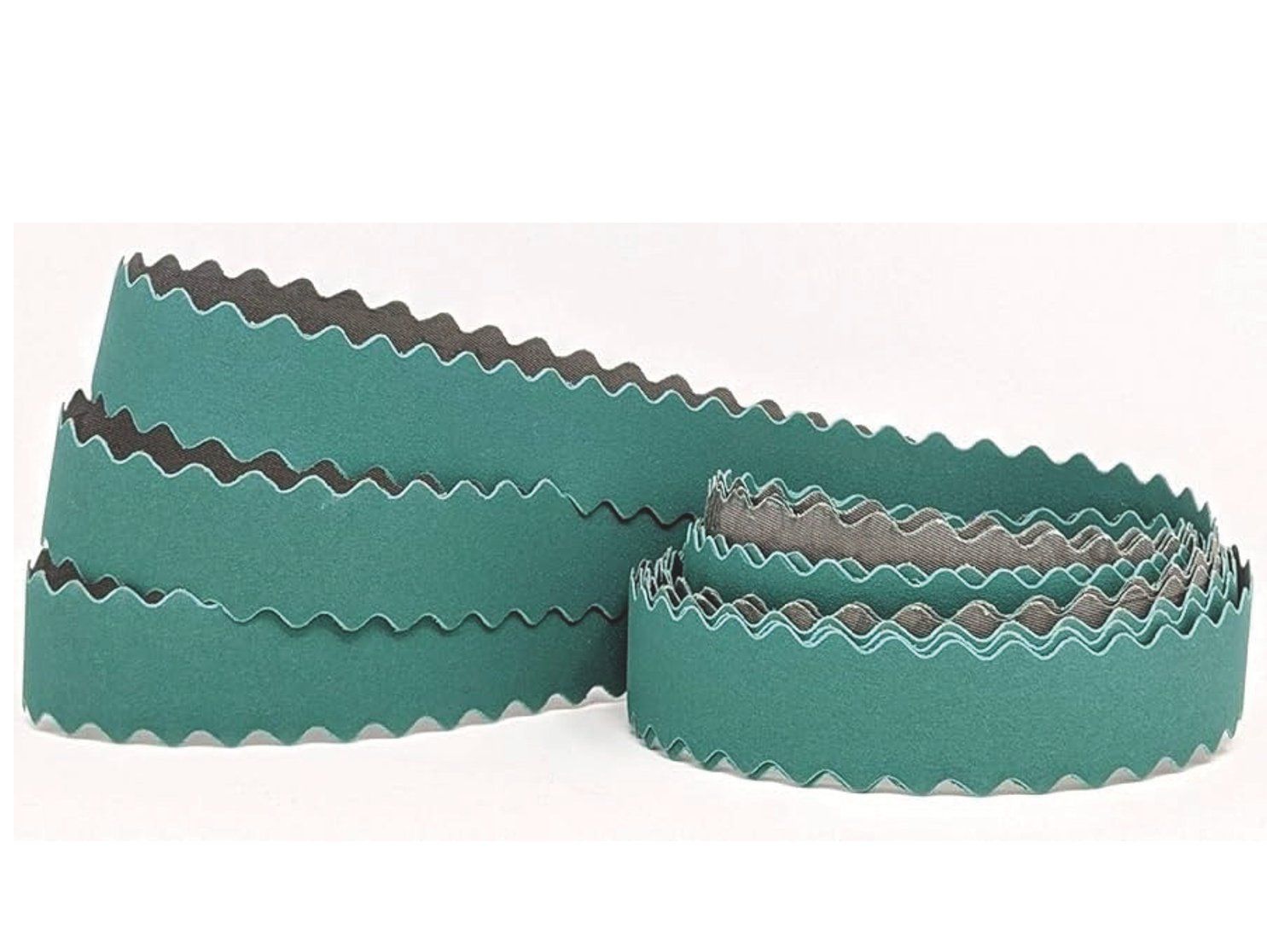 Corundum abrasive with flexible backing for sanding wood, non-ferrous metals, resins and similar soft materials. With success, this belt can also be used for grinding stainless steel and steel in general (grinding of bolsters, guards, etc.) The belt does not contain iron oxides and therefore does not contaminate the work surface. The main advantage is that the edge of the belt does not cut into the material when grinding the handle, but follows the curvature of the surface. This prevents errors and damage when grinding handles and material in general. This advantage is particularly noticeable when grinding on a loose belt.