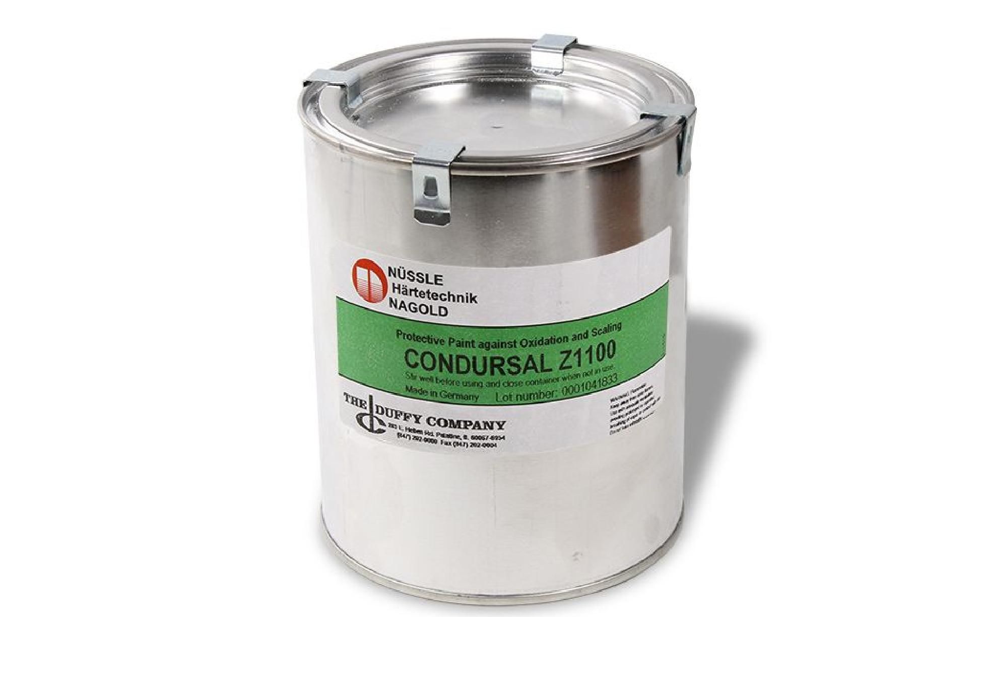 Ochranný nátěrCONDURSAL1100. Ochranný nátěr proti oxidaci. Vlastnosti: CONDURSAL Z1100 chrání nástroje a součásti proti oxidaci při tepelném zpracování v pecích bez ochranné atmosféry v rozmezí teplot 600 - 1100 o C, např. při austenitizaci nebo žíhání. Nátěr se hodí pro běžné oceli, ušlechtilé oceli, šedou litinu, bronz a to při dobách žíhání až 7 h a někdy i déle. Po tepelném zpracování do 850 o C zbytky CONDURSALU Z1100 samy odprýskají. Při použití vyšších teplot se zbytky nechají lehce odstranit kartáčováním. Pískování není potřebné. Použití: Povrch chráněných součástí musí být čistý, suchý, nesmí obsahovat zbytky oleje, tuku nebo být zkorodovaný. Toho lze dosáhnout důkladným opráním nebo odmaštěním v rozpouštědlech. Často stačí pouze oprášení součásti a odstranění ulpěných částeček. Před použitím je CONDURSAL Z1100 nutné dobře promíchat. Nátěr se nanáší měkkým plochým štětcem nebo lépe ponorem. Je možné i nanášení válečkem a nástřikem. K úplné účinnosti stačí běžně vrstva nátěru o tloušťce 15 um. Příliš tlustá nebo nerovnoměrná vrstva způsobuje odprýskávání nátěru a jeho účinnost je negativně ovlivněna. Doba zasychání jedné vrstvy nátěru je 10 min. Odstraňování: Po skončeném tepelném zpracování zbytky CONDURSALU Z1100 odprýskají nebo mohou být odstraněny kartáčováním. Načaté plechovky s CONDURSALEM Z1100 je nutné po použití opět vzduchotěsně uzavřít. Pro praní štětců je možné použít "ředidlo pro CONDURSAL Z1100", případně i xylen, v žádném případě však vodu. Pozor: Příliš tlustá vrstva ochranného nátěru odprýskává. CONDURSAL Z1100 se nehodí pro teploty žíhání pod 600 o C. Při nízkých teplotách se CONDURSAL Z1100 chová jako vypalovací lak a zanechává na povrchu součástí černý, obtížně odstranitelný povlak.Bezpečnostní list zašleme na požádání.