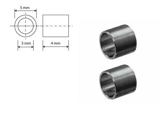 Distanční kroužek pruměr 5mm, díra 3 mm délka 4mm vhodný na zavírací nože.Vyroben je velmi přesně z korozivzdorné oceli.