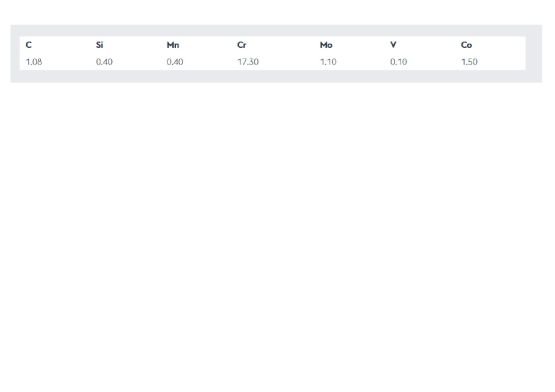 Špičková ocel určená pro kalené nástroje s odolnými řeznými hranami jako např. čepele nožů, chirurgické řezné nástroje, kotoučové nože pro masný průmysl, nože bruslí atd.
