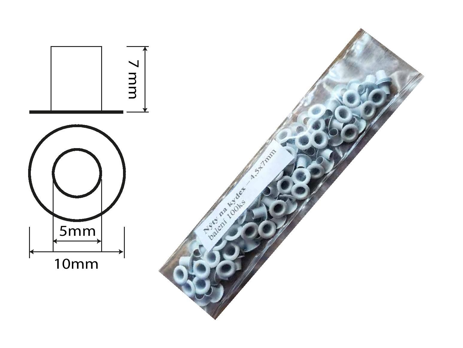 Nýty na kydex vnitřní průměr 4,5mm pro spoj 3,5-4mm tlustý. Materiál lakovaná ocel.