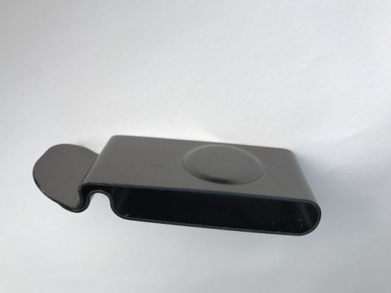 Opaskový klip široký 16 mm k výrobě pouzdra na nůž, nebo například na svítilnu. Klip se k pouzdru nýtuje skrze otvory o průměru 4 mm nebo se prošívá do pouzdra. Klip je vyroben z ocelového plechu (černý nikl) o síle 0.8 mm, který zajišťuje nejen dostatečnou odolnost celého klipu, ale také pevnost samotného připnutí na opasku.