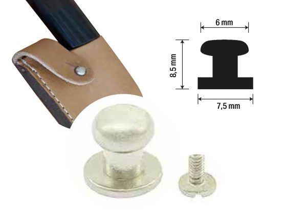 Šroubovací nýt pro bezpečné, rychlé a pohodlné aretování nože v pouzdře. Slitina zinku a niklu.