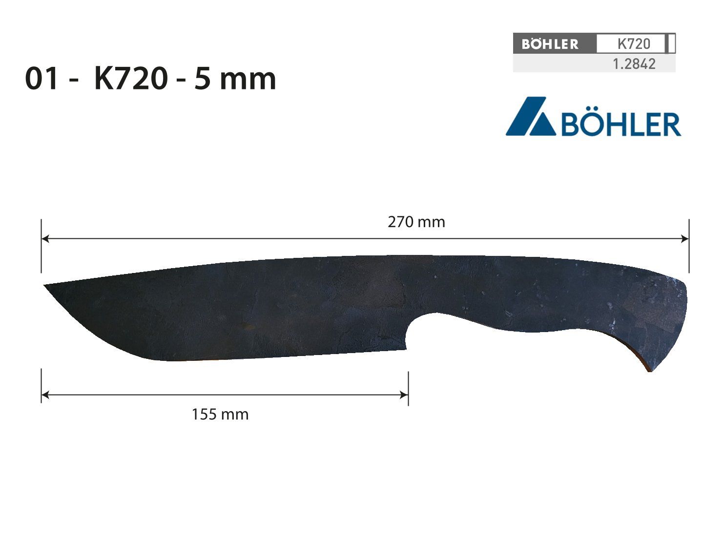 Výpalek je vyrobený z oceli K720, takzvané "stabilky" či O1 oceli. Tato ocel zaručuje perfektní řezivost a odolnost při tvrdosti po kalení cca 58 HRC. Lze snadno kalit a popouštět v domácích podmínkách. Při vhodném výbrusu a broušení se jedná o dokonalý tvar pro výrobu sekacího nože. Výpalek není zakalený, je nutné ho po vybroušení zakalit. Je možné so ho předvrtat, nahrubo vybrousit a nechat zakalit. Poté vybrušovat na pásové brusce.